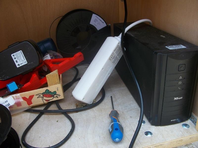 en bas , j'ai prévu un onduleur afin de pallier au saute d'humeur d'EDF ( en cas de coupure , l'imprimante ne reprends pas là ou elle était resté ..... la pièce et donc foutue sachant que certaine pièces prennent plus de 10 H !!! )