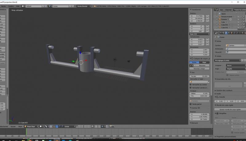 retour sur BLENDER pour améliorer les bras , on voit les triangles de soutien en plus