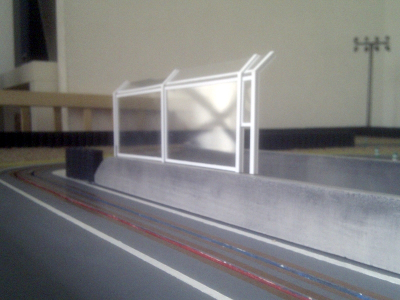 Au départ, j'avais prévu une barrière droite, puis j'ai visionner à plusieurs reprises une vidéo du Melbourne. je me suis donc inspiré de la pit lane de ce circuit pour mes barrières