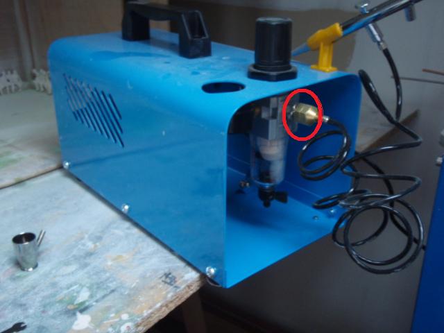pour coupler la sortie,pour l'instant je ne me suis pas trop pris la tete,j'ai emmenché un tyau rilsan 4x6 sur la sortie sur lequel j'ai emmenché un autre rilsan 6x8 dans lequel j'ai emmenché le raccord du flexible de l'aéro, vu que celui ci est crénelé ça crée une petite fuite à cet endroit ce qui me permet d'avoir moins de pression sur la gachette de l'aero