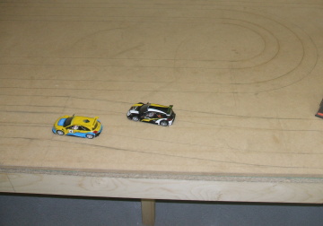 alors 20mm sur toute la longueur de la piste et apres 50 mm avant le premier slot , et 90mm entre les deux slots et re 50mm , je pense que c'est suffisant , apres comme dit TEUBAR tu triches dans les courbes en frottant le cul des voitures sur les barriéres , en prenant plus de vitesse