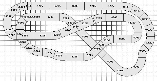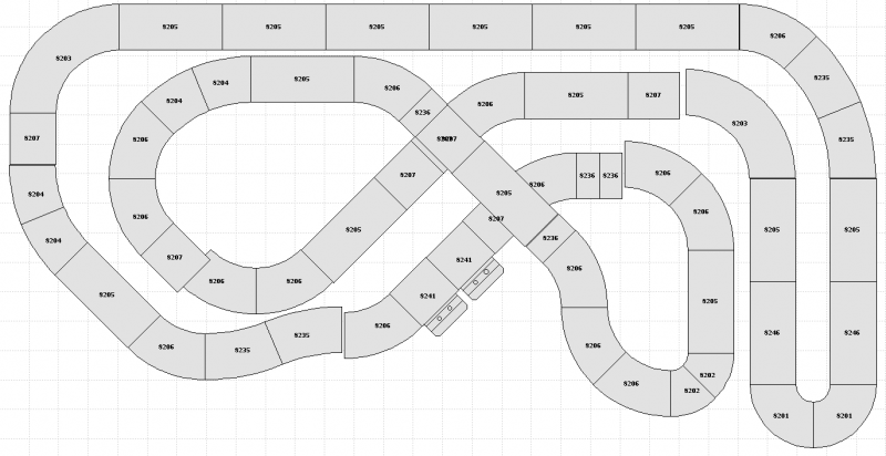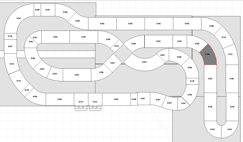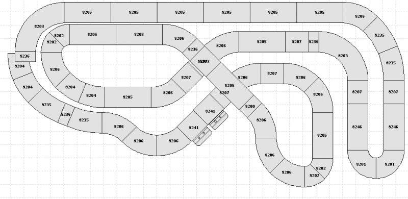 Je viens juste de positionner le croisement 8203 qui était en haut à gauche au niveau des 8206 dont un est grisé sur le précédent plan. Ca permet de mieux équilibrer les deux pistes.
