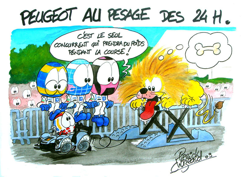 | Les essais n'ont pas commencé que Peugeot commence à se plaindre ... j'ai horreur des ces pleurnichards qui cherchent des excuses lorsqu'ils sont dominés. Je vais finir par devenir supporter d'Audi ... Ah non il nous reste Pesca, heureusement ! |