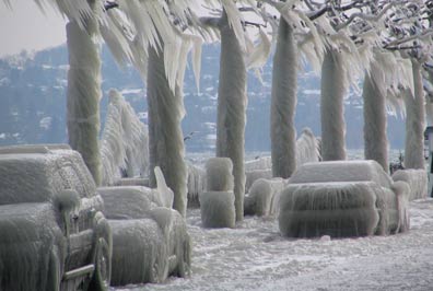 | C'est super solide, j'ai essayé de casser la glace avec une pioche, je n'y suis pas arrivé. (cf les traces blanches en bas de la première photo.) Si ça se répète, on pourrais réunir quelques givrés et hop, voilà, là le topic est vraiment pourri comme il faut Pat |