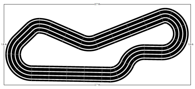 | 370X180, j'appelle pas ça manquer de place (le mien fait 270X0,70) ! Avec un 2 voies tu aurais + de développement. Pense aussi à faire deux niveaux... avec un pont style Suzuka. |