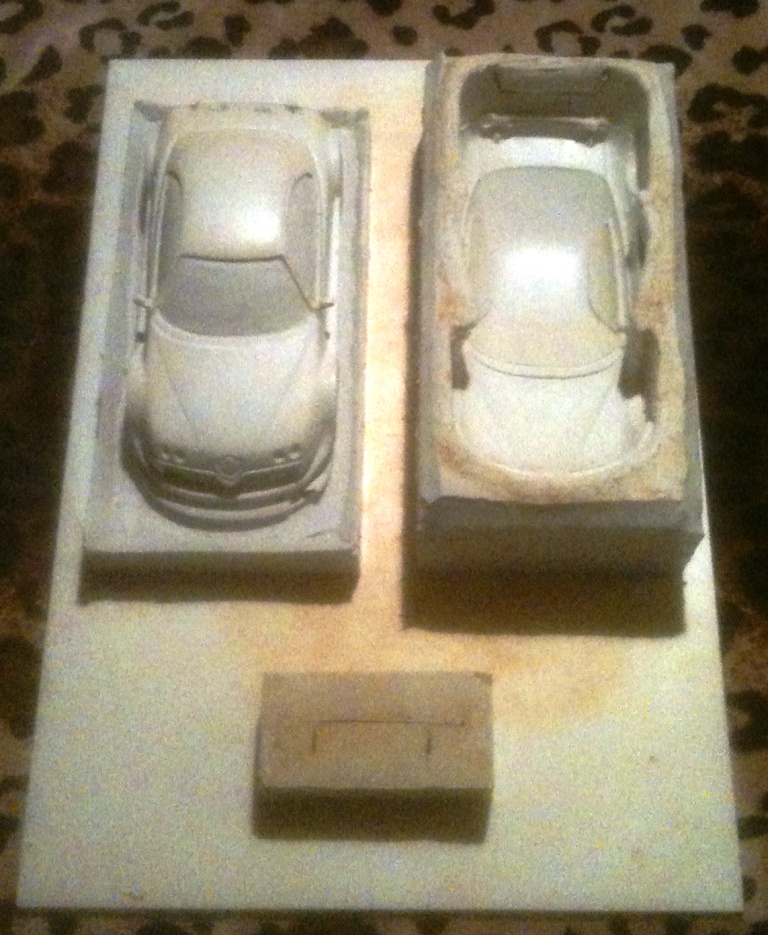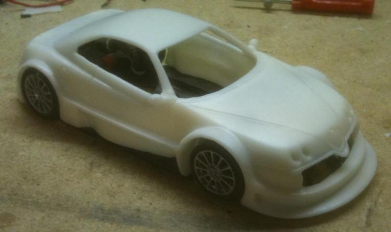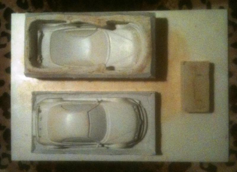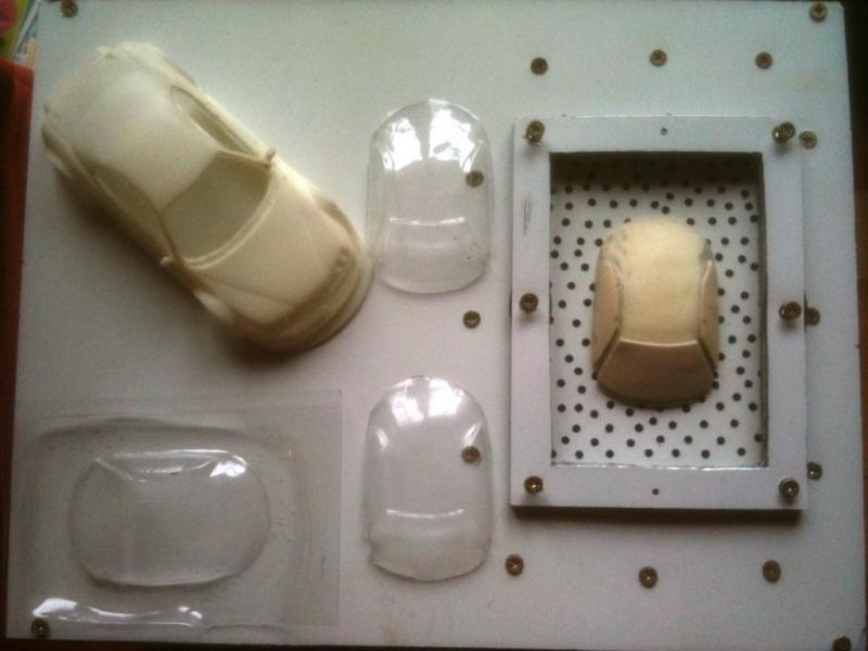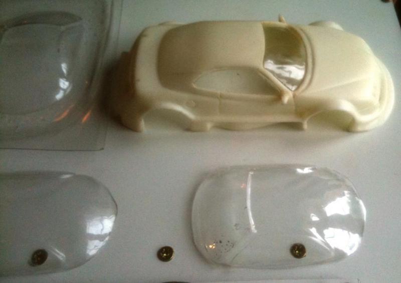 | et bien voila les premiers tirage du WE pas trop de souci la premiere ma permis de faire quelque reglage et les suivantes n'ont pas poser de probleme au final la coque fais en moyenne 36 g, ce qui au regard des quelques resines du commerce que je posede et plus leger. reste plus qu'a faire les feu arriere et les vitrages (ce qui je l'espere ne prendra pas trop de temps) aler passont au photos la premiere degrossie et monté sur chassis |