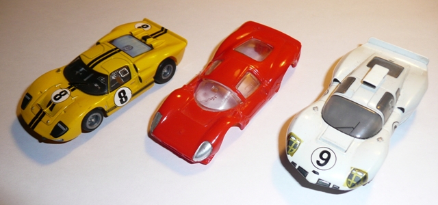 La Cheetah Tyco S , ça risque d'etre petit par rapport aux autres ( demandes les dimensions avant de commander , je crois que c'est + au format des vieilles T'jet) La GT40 est pour un tyco large . Tu peux mettre un Tyco HP7 dessous si tu veux pas que ça bombe . La 910 C+R bodies : Prevue pour SG+ , vu l'etroitesse des flancs , elle ne montera pas dans un magnatraction . Ce sera une Carrera6 mais sans la custode plexi !!!! |