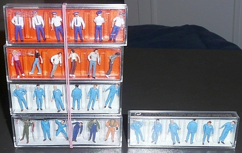 Les personnages blancs sont les Minic Motorways et les bleus les Preiser.