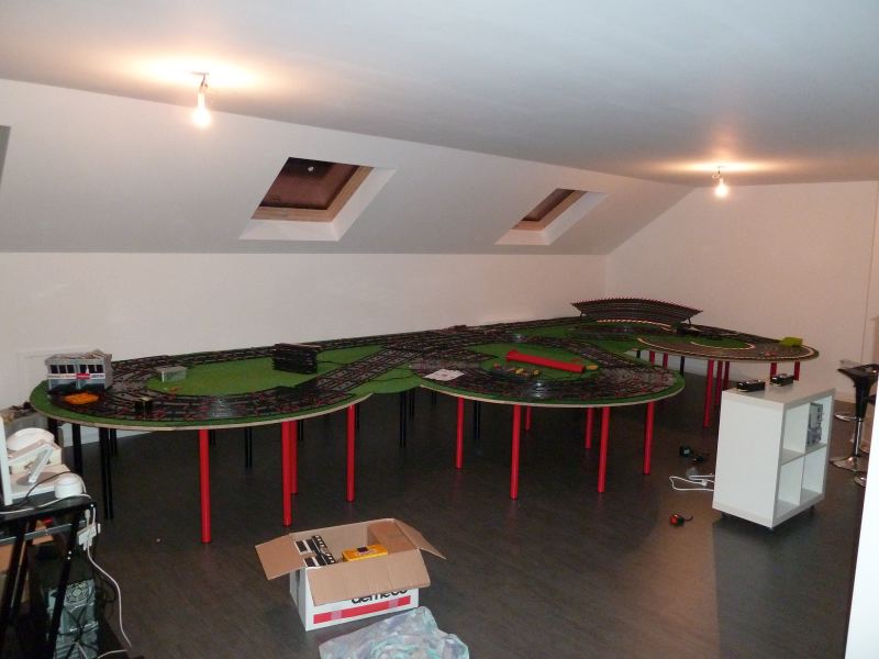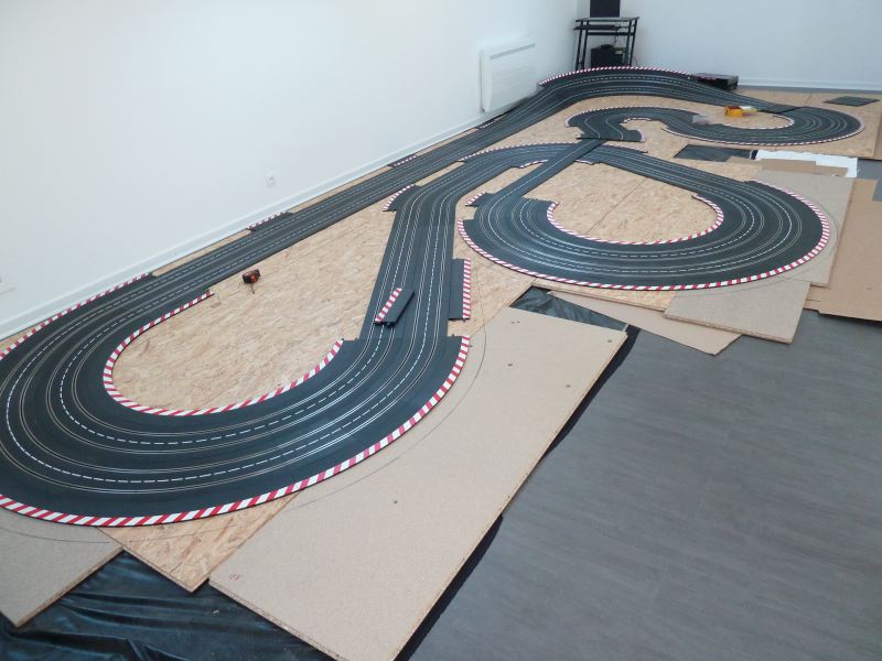 moi j'ai fabriqué des cales en contre plaqué (hauteur 16 cm)...sinon trés bel espace et ta piste.......wouaaaaaaaa!!!!!!!!!!