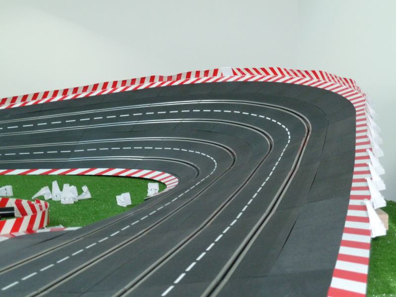 par contre autre soucis : la barrière du banking j'ai pris la barrière rouge et blanche carrera mais elle gondole pour les barrières , j'utilise des lames de pvc souple que je récupére chez le fabriquant de fenetres. |