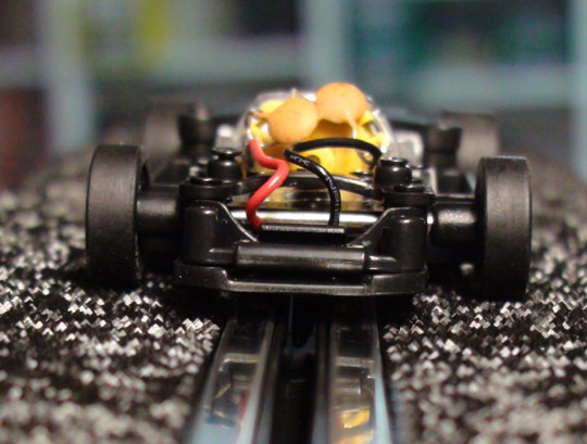 et tu sais en slot les roues av doivent effleurer la piste car elles servent juste d'appuis dans les virages.