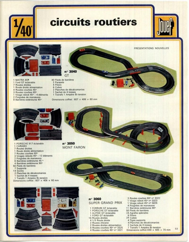 en 1965 jouef savait faire des miniatures qui roulaient remarquablement bien, sans aimant, avec une garde au sol qui ne les faisaient pas ressembler à un 4x4, avec ni le nez en l'air, ou l'arrière en bas, elles avaient même les roues avant directrices! tout çà pour le prix d'un jouet accessible à TOUS. le seul réglage à faire en sortie de boite c'était tordre les tresses. c'était nickel. c'est plus compliqué en 2012? |