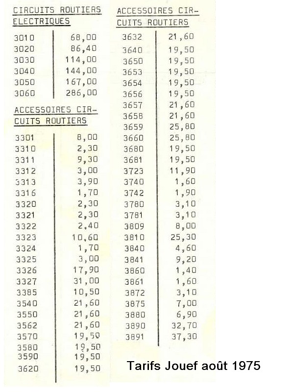 le smic était a moins de 800frs et la voitures valait de 30.00 frs a 45.00 frs un circuit de 150 a 300 frs si ma mémoire est bonne