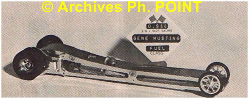 Le premier anglewinder au 1/24 fut effectivement construit par Gene Husting fin 1967, inspiré par une photo d'un chassis au 1/32 construit par Roy Moody.