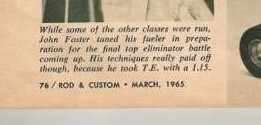 L'article que j'ai retrouvé où sont donné pas à pas tous les détails de la construction de ce drag apparait dans la revue Rod & Custom et s'étale sur 4 numéros de décembre 65 à mars 66.