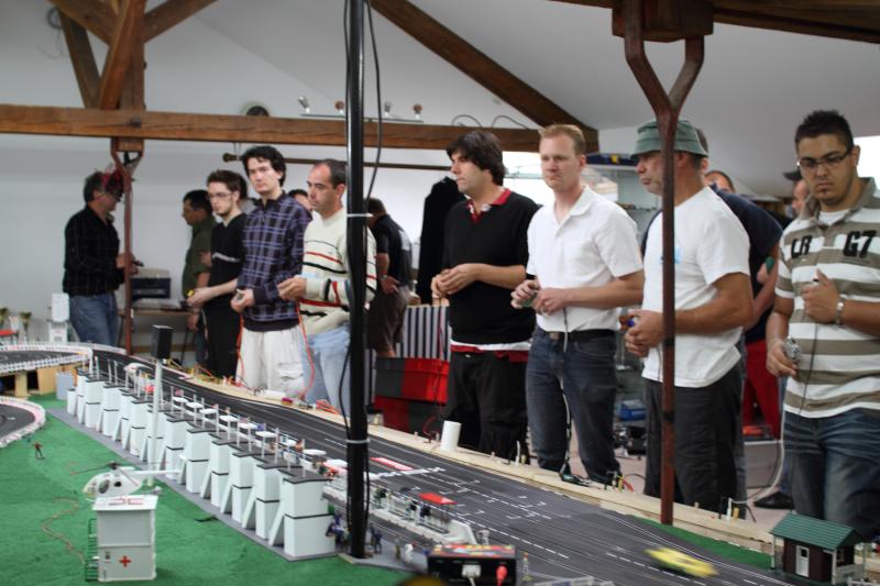 Merci à Hubert et à son épouse pour son accueil de première classe et le plantureux repas de midi. Mis à part quelques petits incidents techniques et l'esprit de compétition exacerbé (et sans doute insuffisamment sanctionné) de certains concurrents qui aura malheureusement découragé quelques pilotes débutants, l'organisation du week-end aura été sans failles. Mention spéciale à la superbe piste Carrera décorée de l'hôte de cette première manche du Grand-Est.