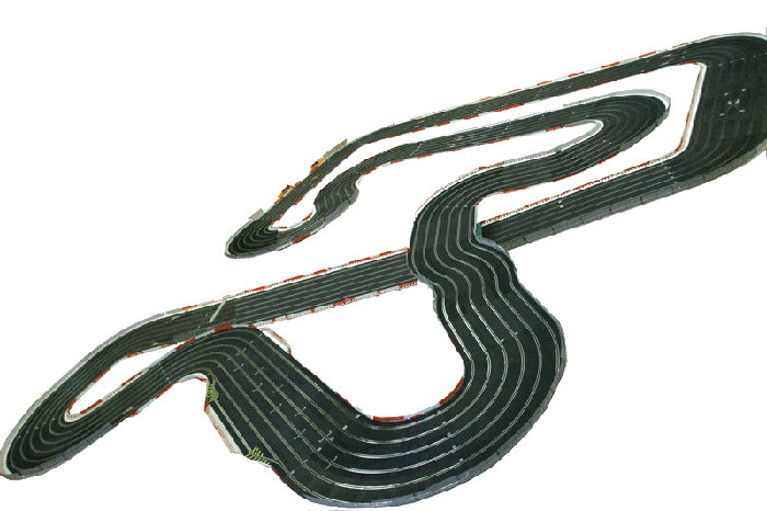 La magnifique piste de 40 mètres en Ninco 4 voies. Piste rapide et technique surtout le S à l'autre bout.