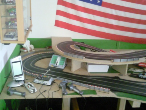 Ok j'ai compris et je suis d'accord avec toi. Comme je te le disais (mais c'est pas toujours clair), c'est le mur du fond (celui du drapeau) qu'il te faut exploiter. Soit pour ranger, ou soit pour installer un circuit en fixe un circuit.