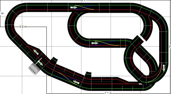 voila encor un tracer casiment similaire avec juste 2 .3 modif pour qu'il puisse fermer a vos com le coter rouge fait 9.12m et le vert 9.21 donc casiment pareil et sa me ferai racheter 4 r3 et 2 r1 avec un kit digital et un stand qu'en penser vous