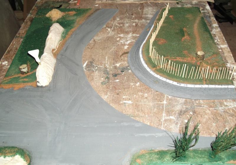 Ce décor sera en angle de table. Le passage R2-R1, qui n’est pas contraignant pour les voitures, sert surtout à réorienté vers l’intérieur de la table. Hier soir encore je me suis amusé avec la Lancia D20 BSR et la FLY R5 turbo T de F 1980 Ragnotti parce qu’il y a deux courbes, sur les 14, qui ne me plaisent pas.
