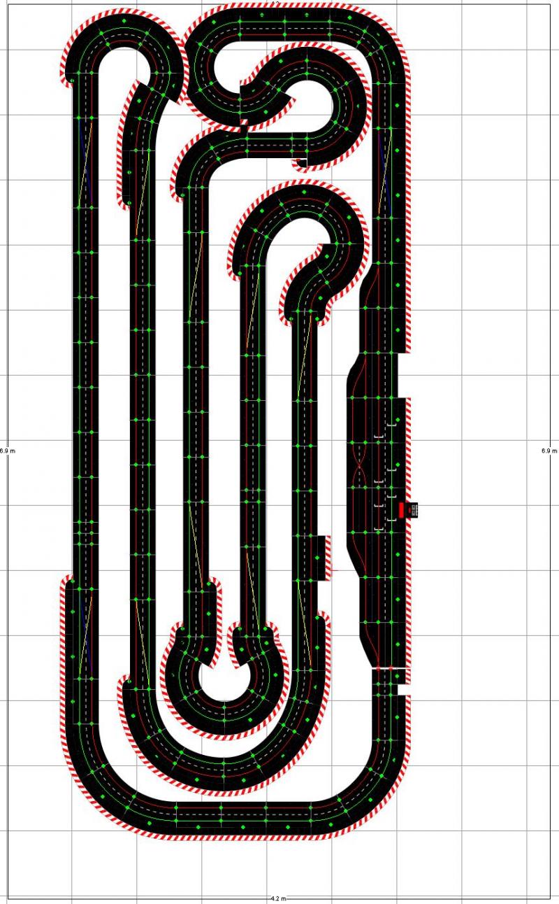 après un week end de grippe plus propice à la réflexion qu'au slot je me suis décider a refondre fortement ma piste, principalement pour en améliorer l'accessibilité et la fluidité cela impose quelque sacrifice, elle y perdra deux courbes 1/60 et deux droites vos avis m'intéressent |
