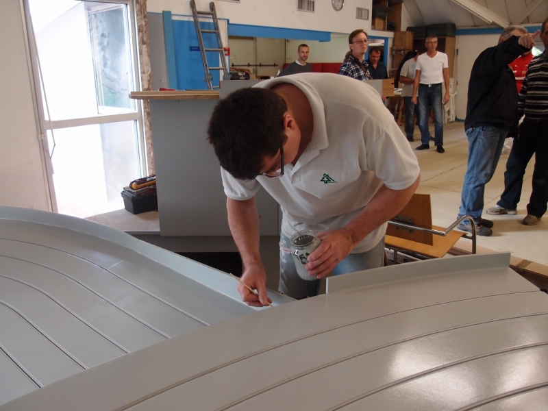 Deuxième couche ce week end apres un ponçage au 320 sur la première couche , quelques petites imperfections mais ça restera comme ça ...