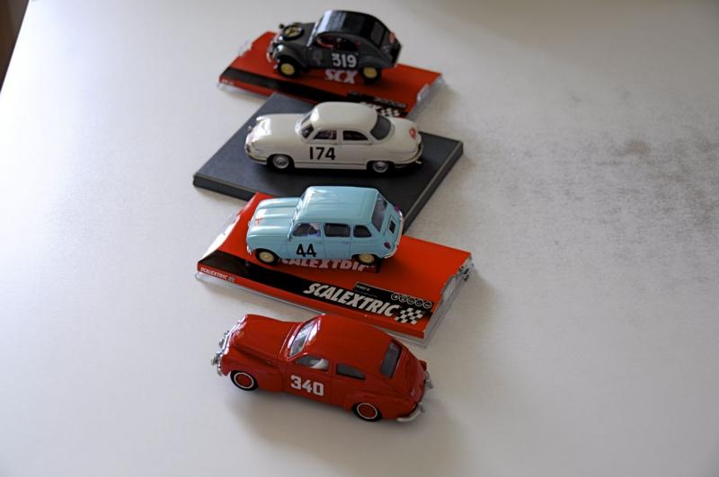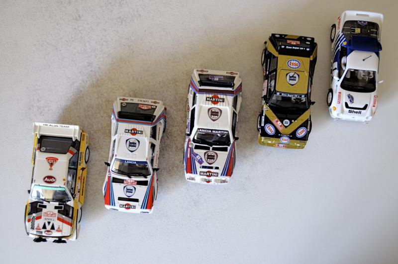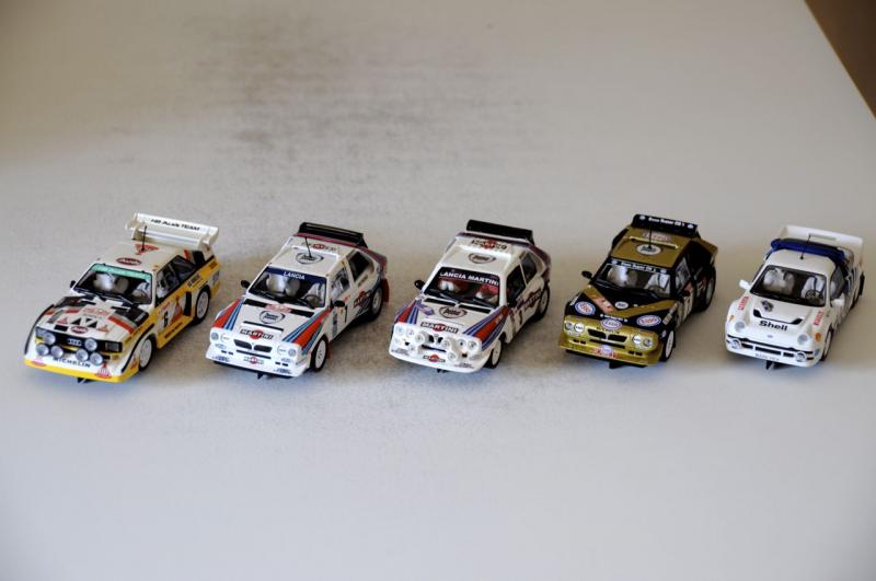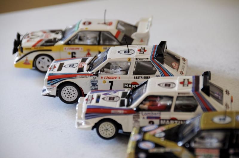 Sur la première photo, les deux de gauche (Lancia et Audi) sont celles du coffret Scalextric Monte-Carlo 1986 dont j'ai complété la décoration avec des décalques Martini et HB.