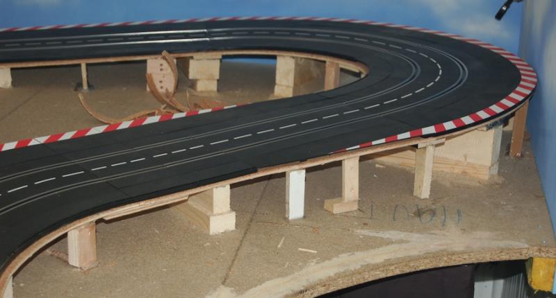 J'ai un peu avancé, les élévations sont terminées, et tous les supports de piste sont désormais stables. La piste semble bien posée, pas de cassures, les reliefs sont OK. Je suis en train de finir d'enfiler les cables de cuivre dans les rails et en parallèle j'ai commencé les supports de pont. On est assez proche de ce qu'a fait Gribouille, c'est également ce que j'ai pu voir sur d'autres projets de pont, donc je pense que c'est la meilleure solution.