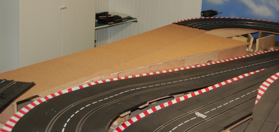 J'ai collé du liège sur l'ensemble de la surface qui accueille la piste afin d’atténuer le bruit :