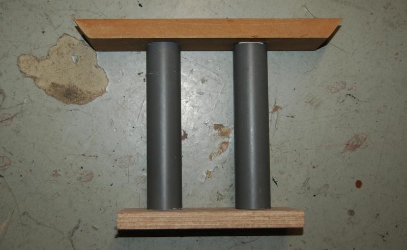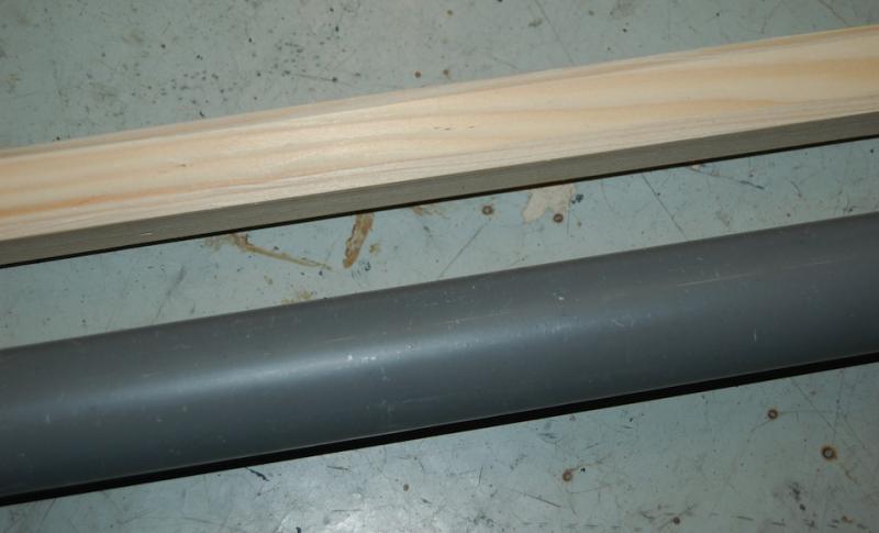En images, les tubes et tasseau (les coins ont été rabotés pour que le tasseau rentre dans le tube) :