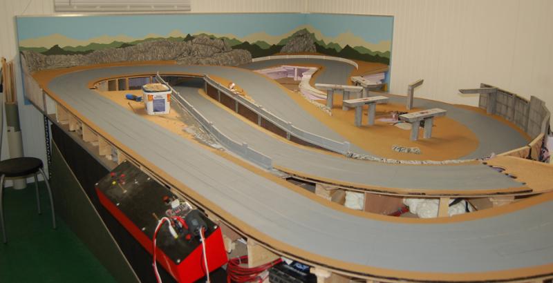 Entre temps, la piste a été fixée, aplanie, les trous et vis mastiqués, ... bref, pas mal de travail réalisé ... Les images valant mieux que des mots :