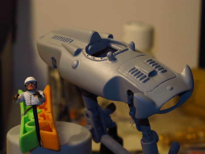 Au passage... je vous montre le éléments rajoutés, la cloison arrière du cockpit, l'appui tête, et le haut du dossier du siège.