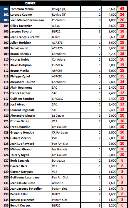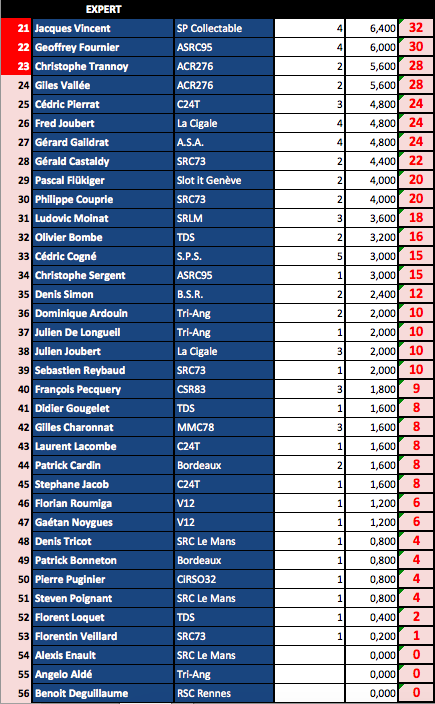 A savoir que ce Ranking sera repris à la fin de saison par la fédération avec les N° de licence des sloteur fédérés....