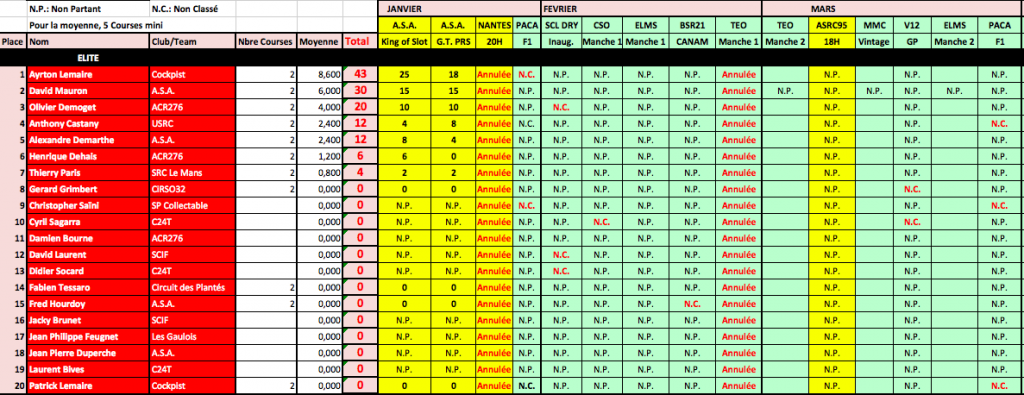 Vous verrez également qu'il nous manque des résultats pour des courses du mois de Mars. TEO manché 2, MMc Vintage, ELMS manche 2.....