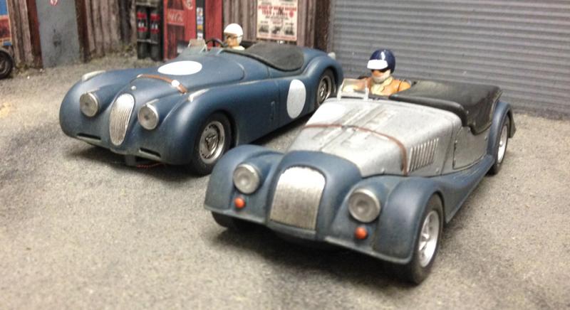 Quelques photos de la Jag en compagnie d'une Morgan plus 8 de chez Carrera que j'avais entamée en même temps. L'idée était de faire deux autos "qui seraient de la même écurie".