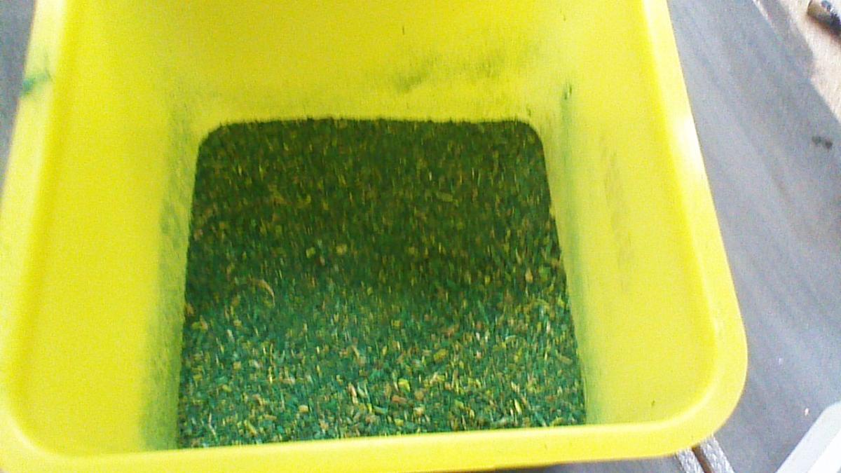 Les copeaux de bois ont un rendu beaucoup moins réel si tu veux simuler de l'herbe, gazon etc... de plus tu peux facilement en fabriquer avec de la sciure mélangée à de la peinture diluée