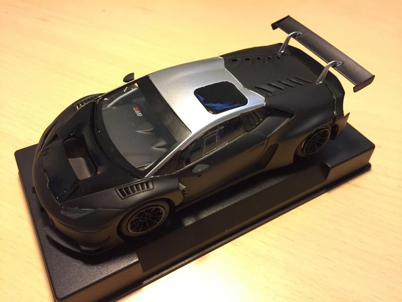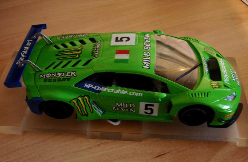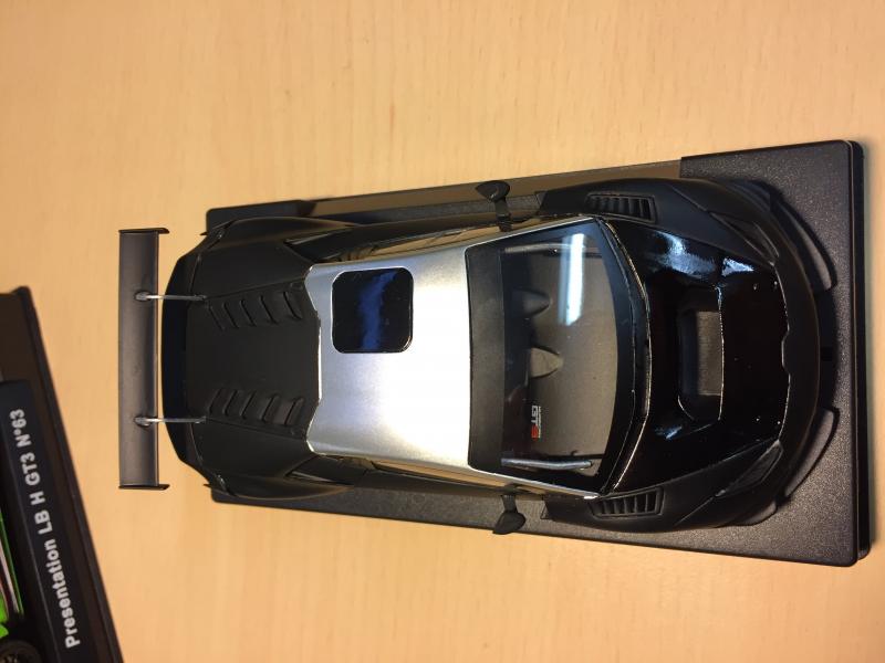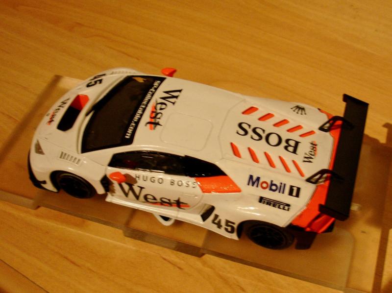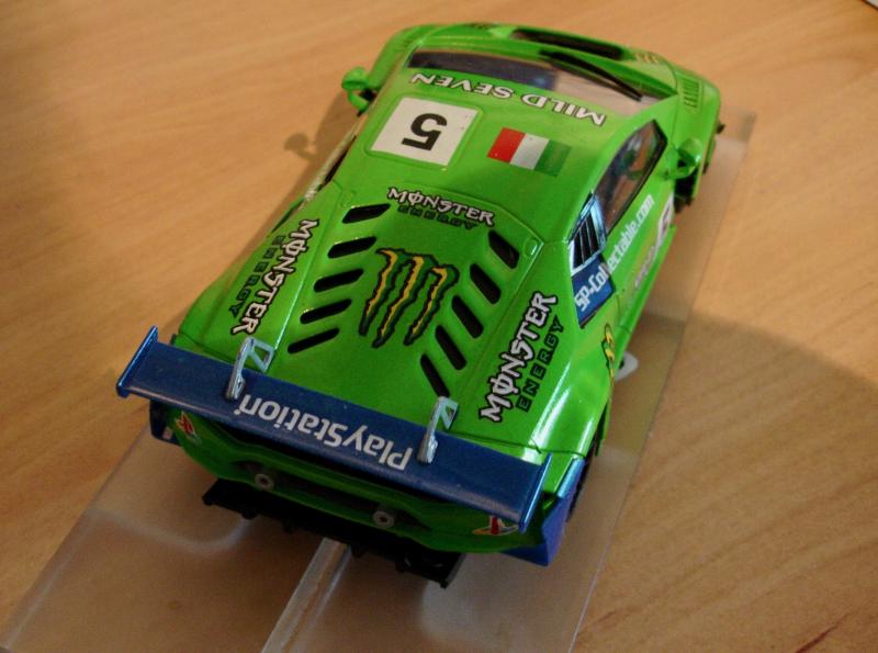 Les voitures noires ne sont pas les plus sympas à mettre sur un circuit, car elles sont trop sombres. Mais j’aime bien ces decos « carbone », et puis avec son toit gris celle-ci est un peu différente!