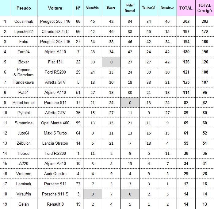 Michel, a220 doit être crédité de 31 points au classement corrigé (34-3), et non pas 30 si je ne me trompe pas.![]()