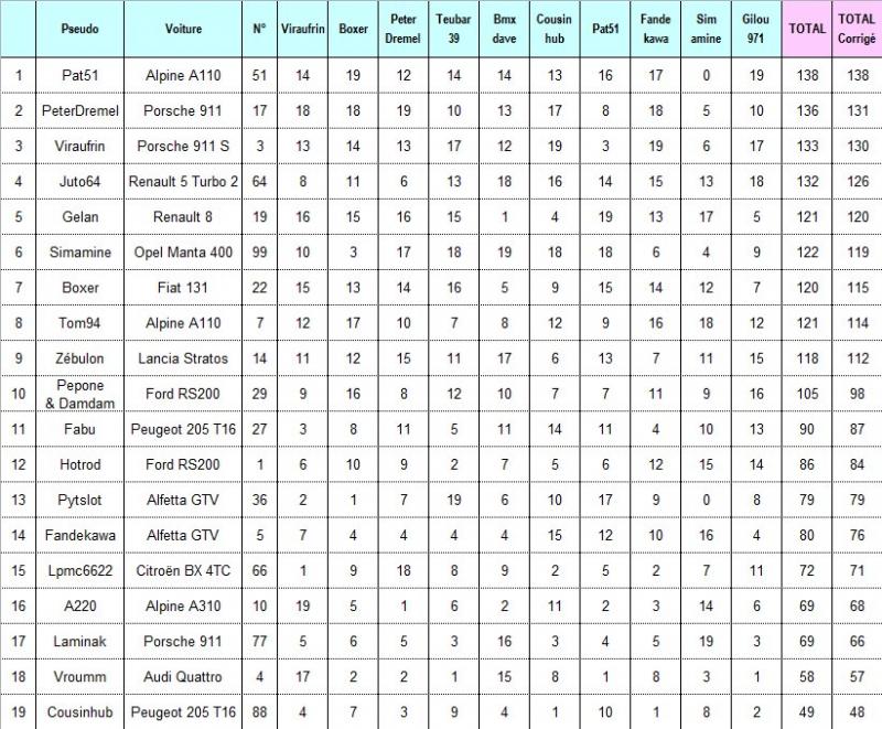 Viraufrin a écrit : Le classement général après l'étape courue chez Vroumm. ![]()