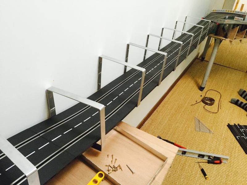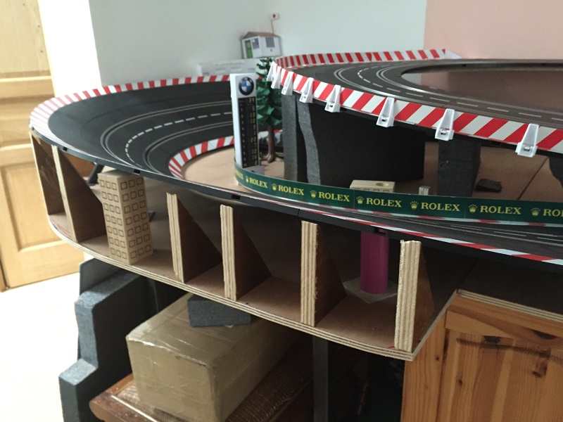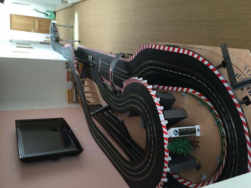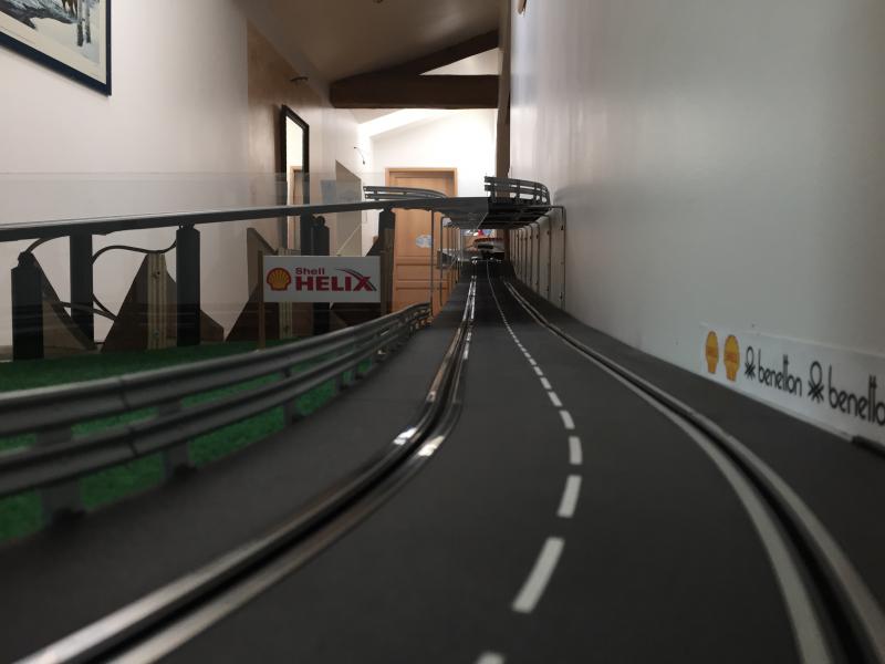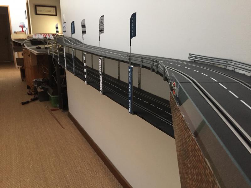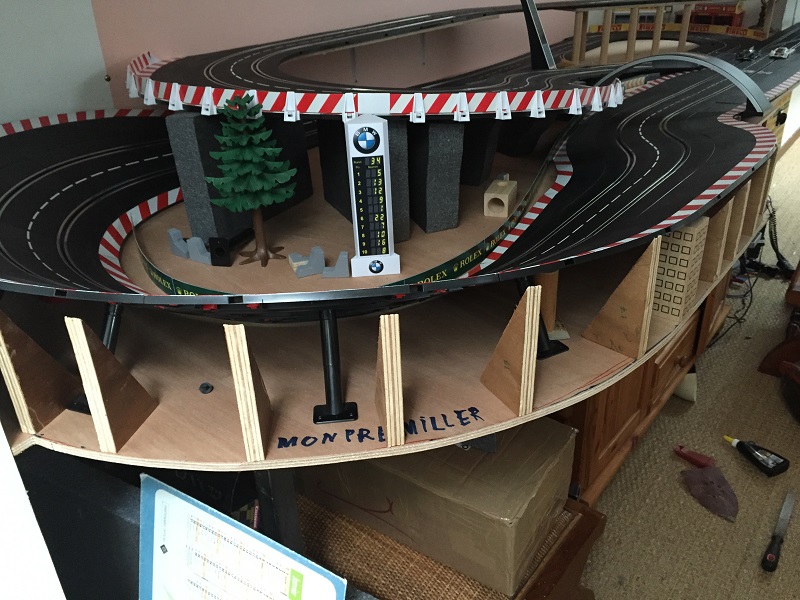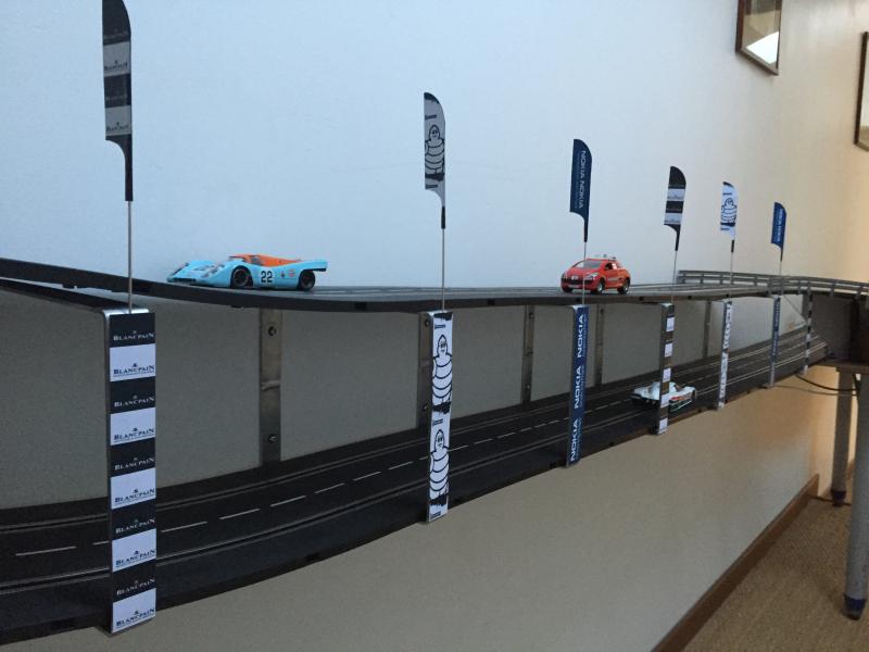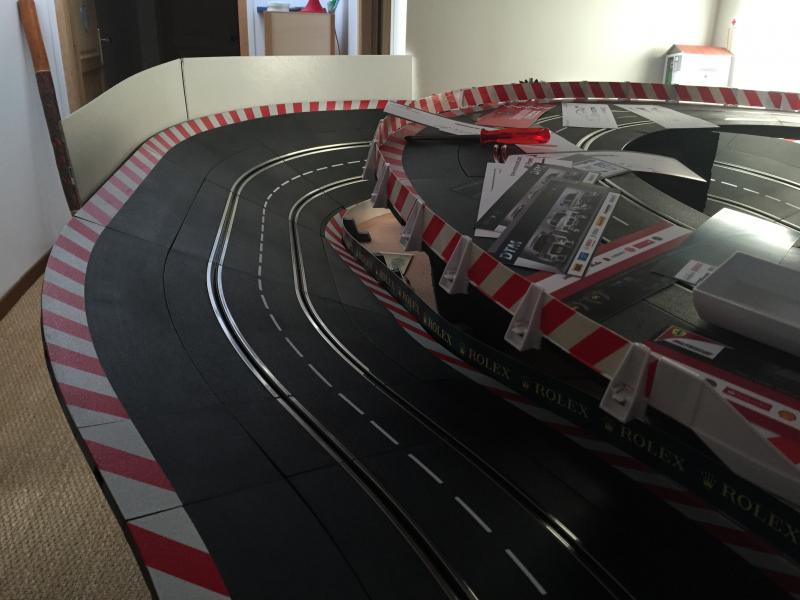 Un essai de déco. Bon, ca manque de cohérence entre les époques, les styles de courses, etc. mais comme je découvre les infinités possibilités du slot (enfin plutôt le modélisme au sens large) je joue un peu à l'apprenti sorcier en essayant un peu tout ce que je trouve...