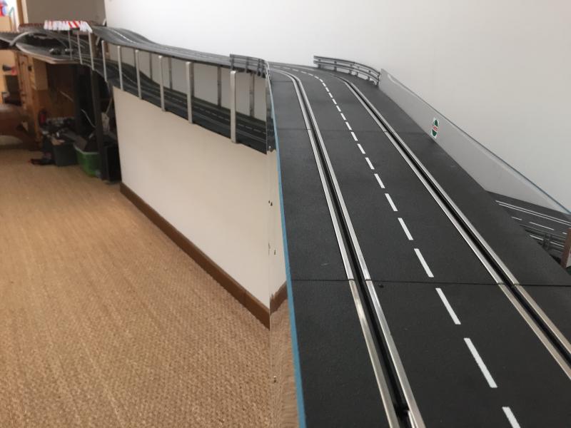 La 1ere remarque est tout à fait exacte pour les voitures rapides: j'ai cédé (à tord) à mon fils qui trouvait ça cool car dans le sens normal, les voitures retombent dans le slot. Mais depuis que je tourne aussi dans l'autre sens (comme sur la dernière photo) on bat des records de saut en longueur. Je remédierai à ça plus tard.