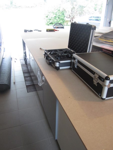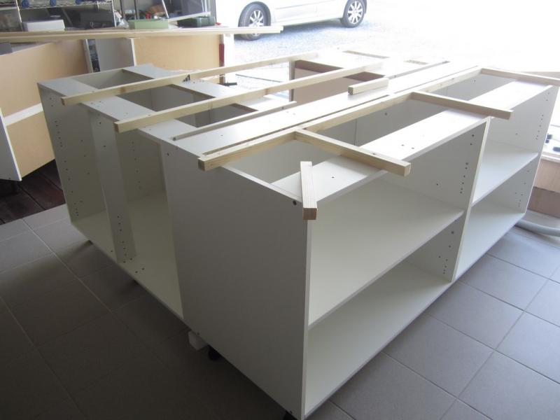 ... ) ... Budget de 950 € pour l'ensemble ( En linéaire : 8m de caissons + 5 Plaques MDF 10 mm + Visserie + 9 Tasseaux 30*30*270 ... ).