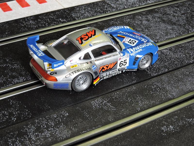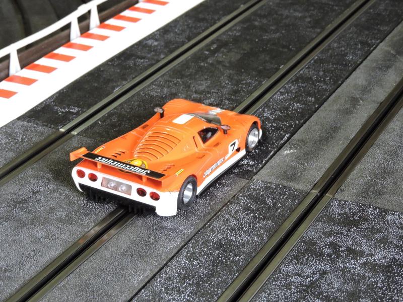 On garde l'avant et l'arrière du chassis d'origine, le reste c'est un HRS Slot It avec un flat 6 ( oui je sais c'est une Ferrari )