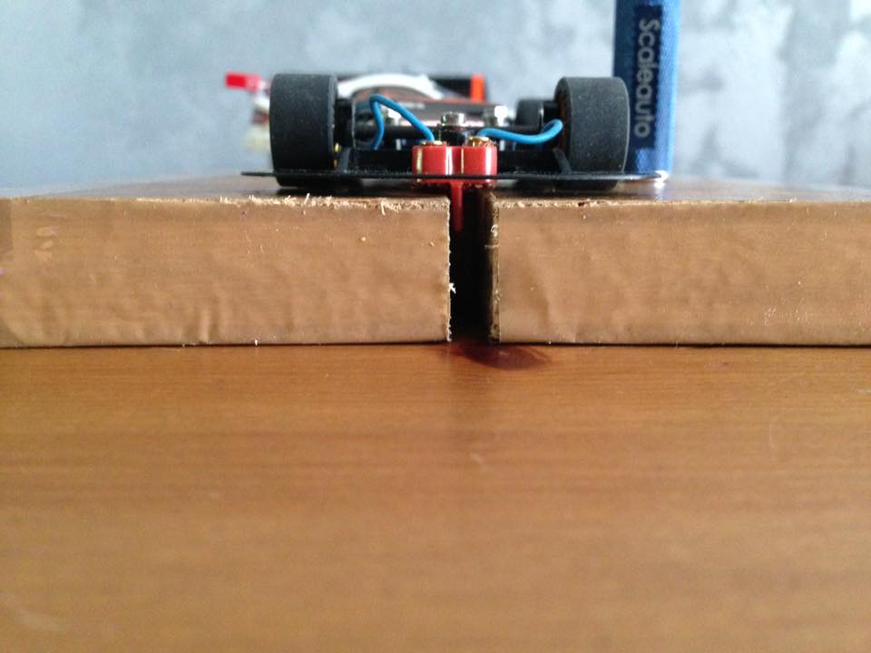 Je ne comprends pas trop ton calcul, mais c'est clair que sur les photos, ton châssis a bien plus que 2 dixièmes de millimètre de garde au sol!