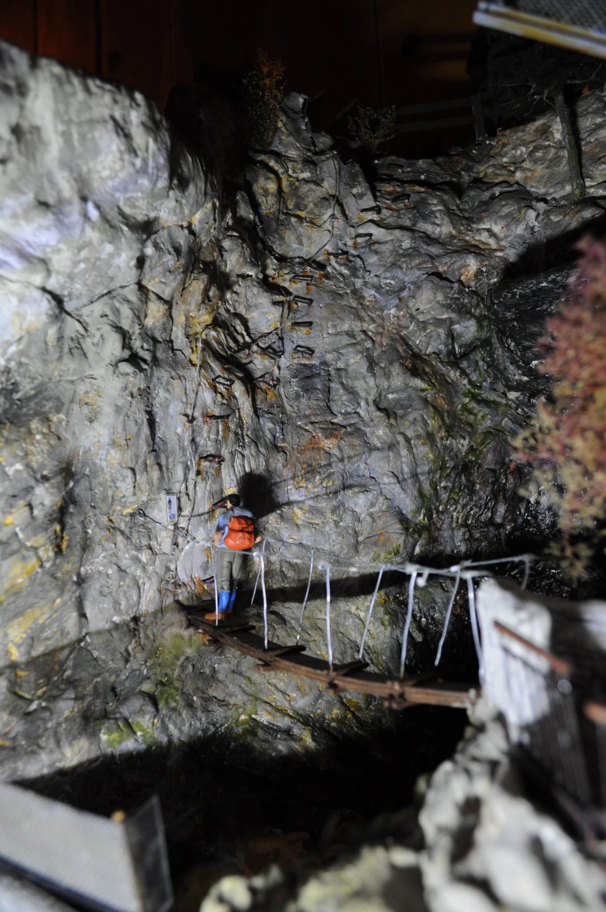 c'est beau, très réaliste bonne idée l'effet de rouille au niveau des points d'accroche des ferrailles le panneau apporte un + indéniable avec le randonneur prêt à grimper on s'y croirait.