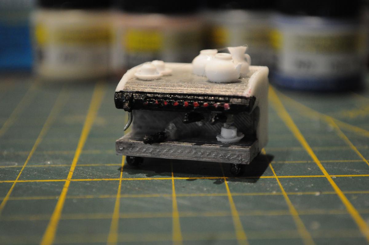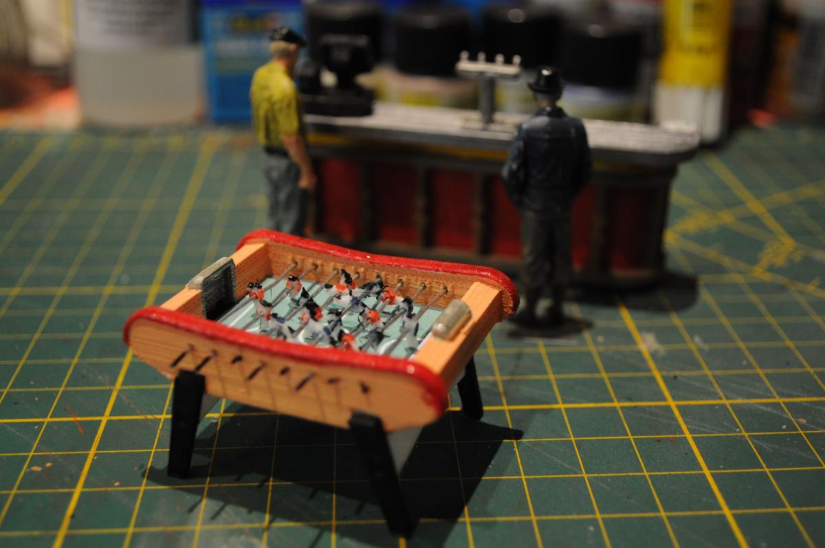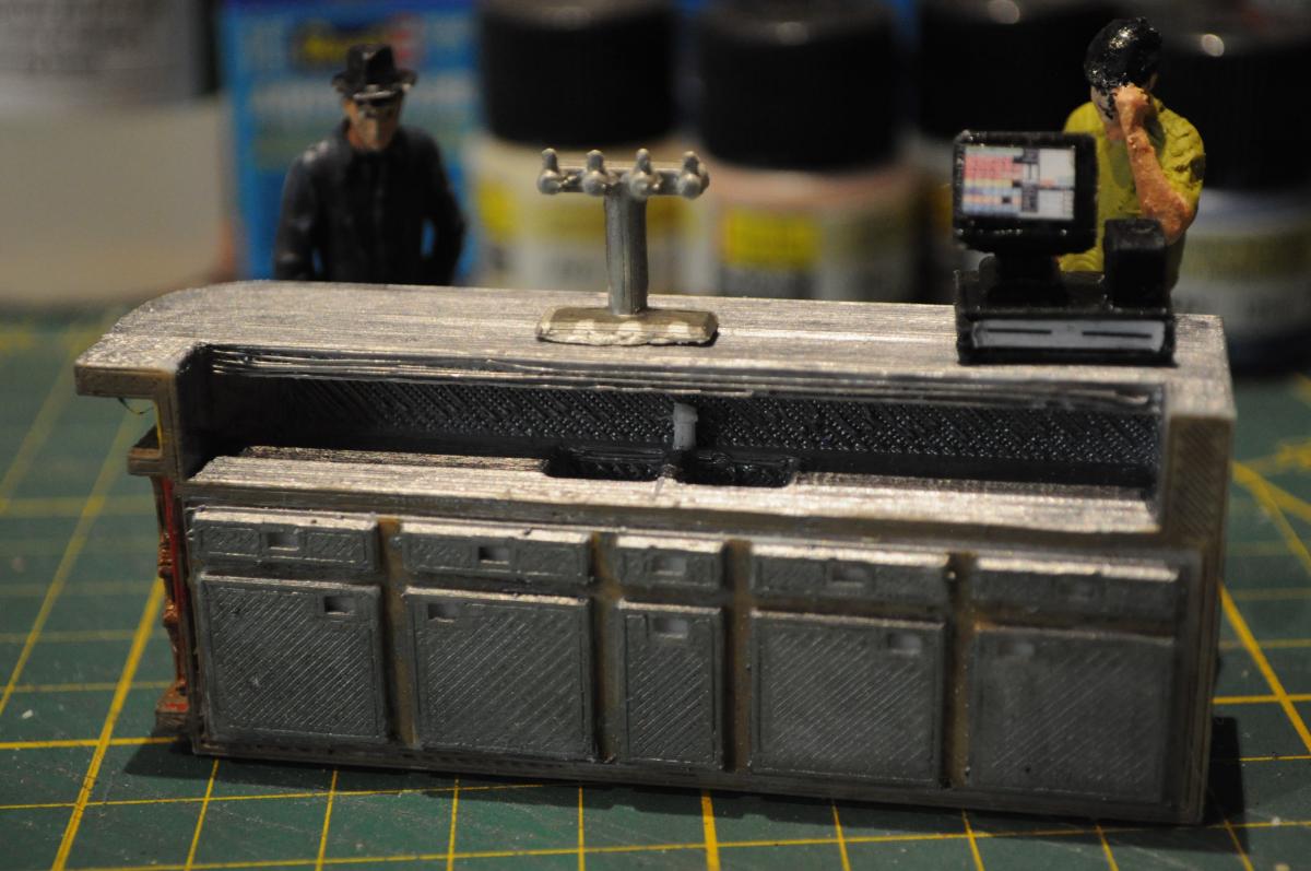 Le comptoir du bar en situation avec des figurines