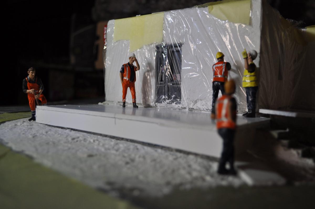 Mon père s'est remis au travail sur le batiment central de la piste.