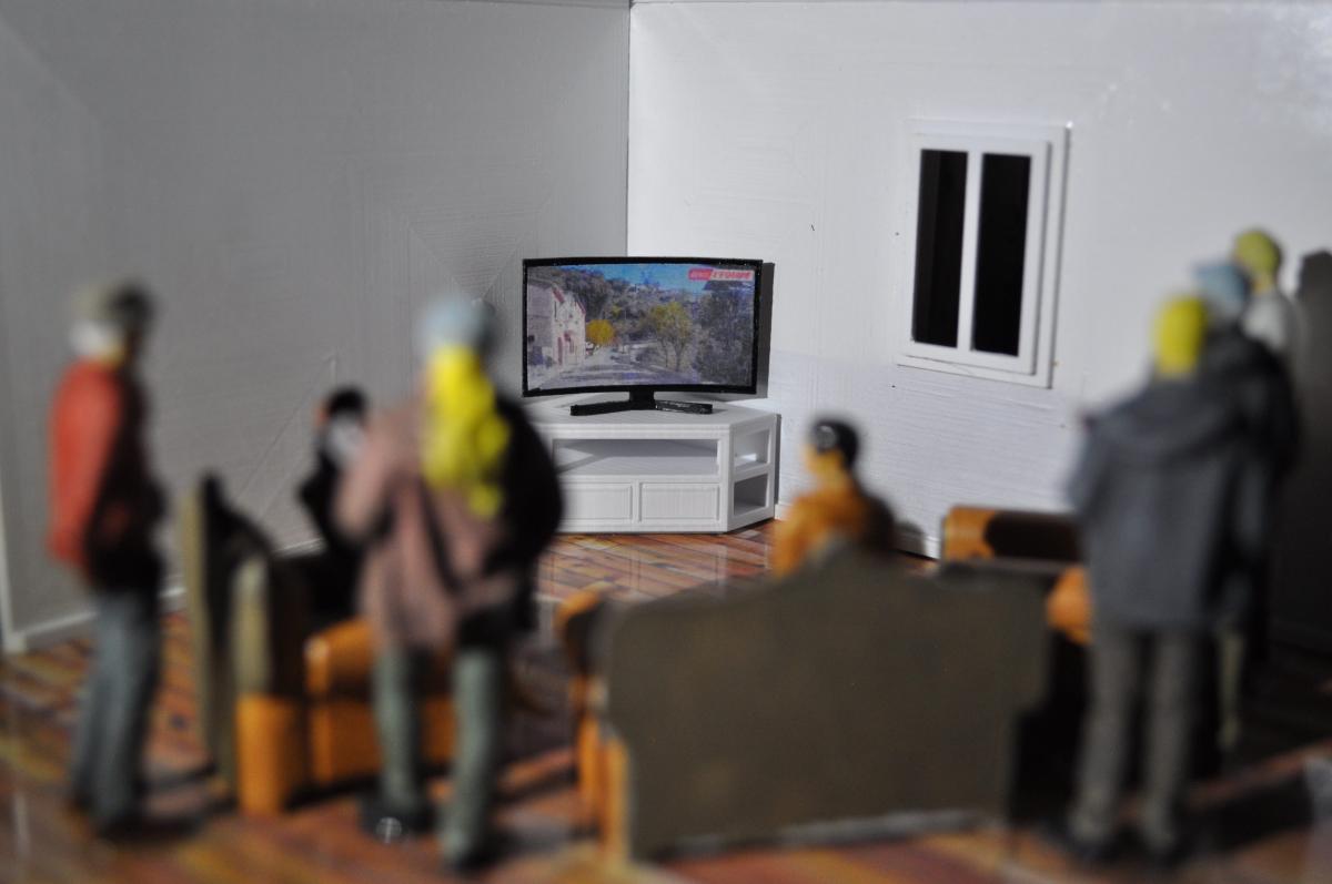 j'ai fait un essai pour le salon avec le meuble TV et l'écran plat.