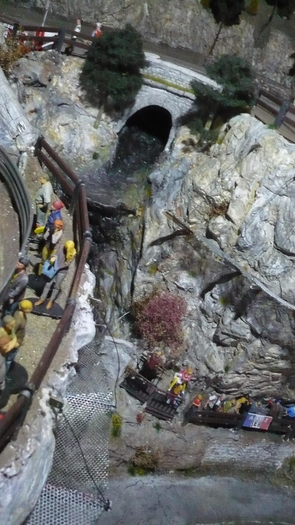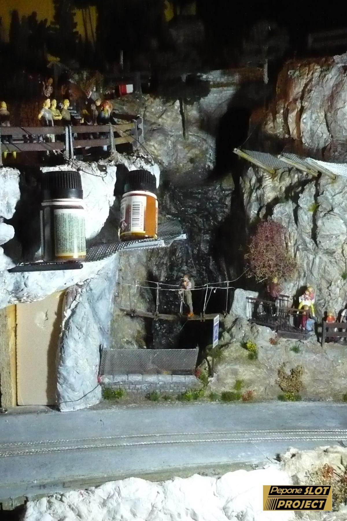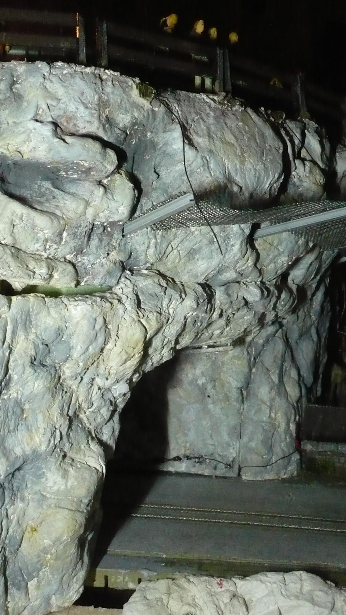 L'installation du filet anti-chutes de pierres au dessus de l'entrée sud du tunnel.