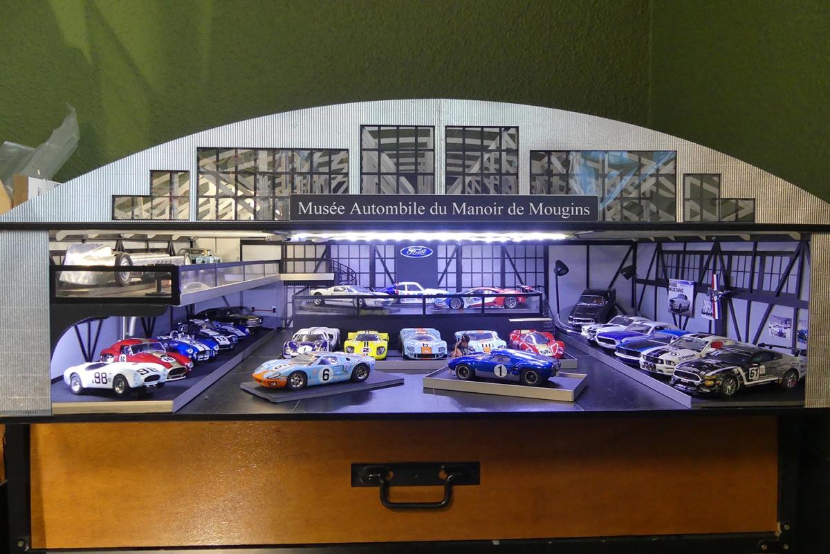 Lorsque je suis revenu au loisir, j'ai décidé de m'en tenir au Ford d'endurance qui figurent des les deux tomes de mon livre, plus les Mustangs dans toutes leurs version. Elles ont maintenant comme écrin le M.A.M.M, le principe reste le même, je ne collectionne que ce que je peux exposer. Bon je triche un peu, il y a un sous sol dans le M.A.M.M où sont conservés les modèles non exposés. Mais en appliquant cette discipline, j'ai pu investir plus sur des modèles rares et plus chers des façons à avoir une collection à la fois belle et cohérente ou par moment investir sur la compétition, comme la Proxy, toujours en participant avec des autos qui finiraient vendues ou dans les allée du MAMM.